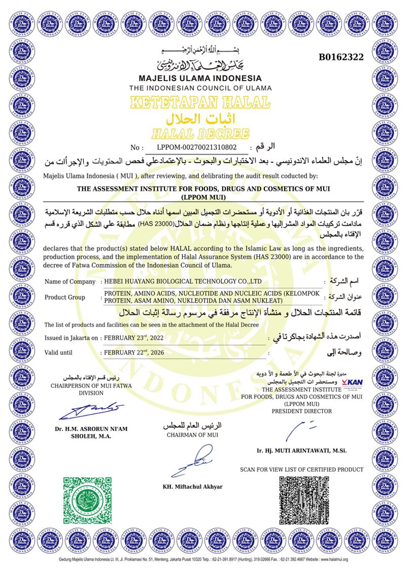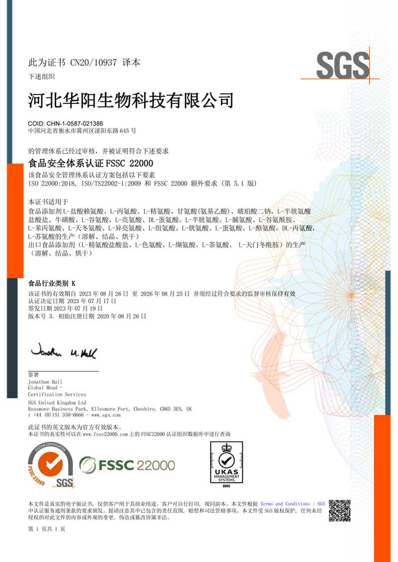 河北華陽集團坐落于河北省衡水市冀州區(qū)省級工業(yè)園區(qū)(始建于1987年,前身為冀州市華陽化工有限責(zé)任公司)。集團下屬四個公司:河北華陽生物科技有限公司、河北華悅氨基酸科技有限公司、滄州華晨生物科技有限公司、衡水市陽力商貿(mào)有限公司。主要生產(chǎn)甘氨酸、L-丙氨酸、L-蘇氨酸、DL-蛋氨酸、L-賴氨酸鹽酸鹽、L-半胱氨酸鹽酸鹽、干貝素等氨基酸系列食品級產(chǎn)品,廣泛應(yīng)用于食品、飲料、飼料等行業(yè)。......